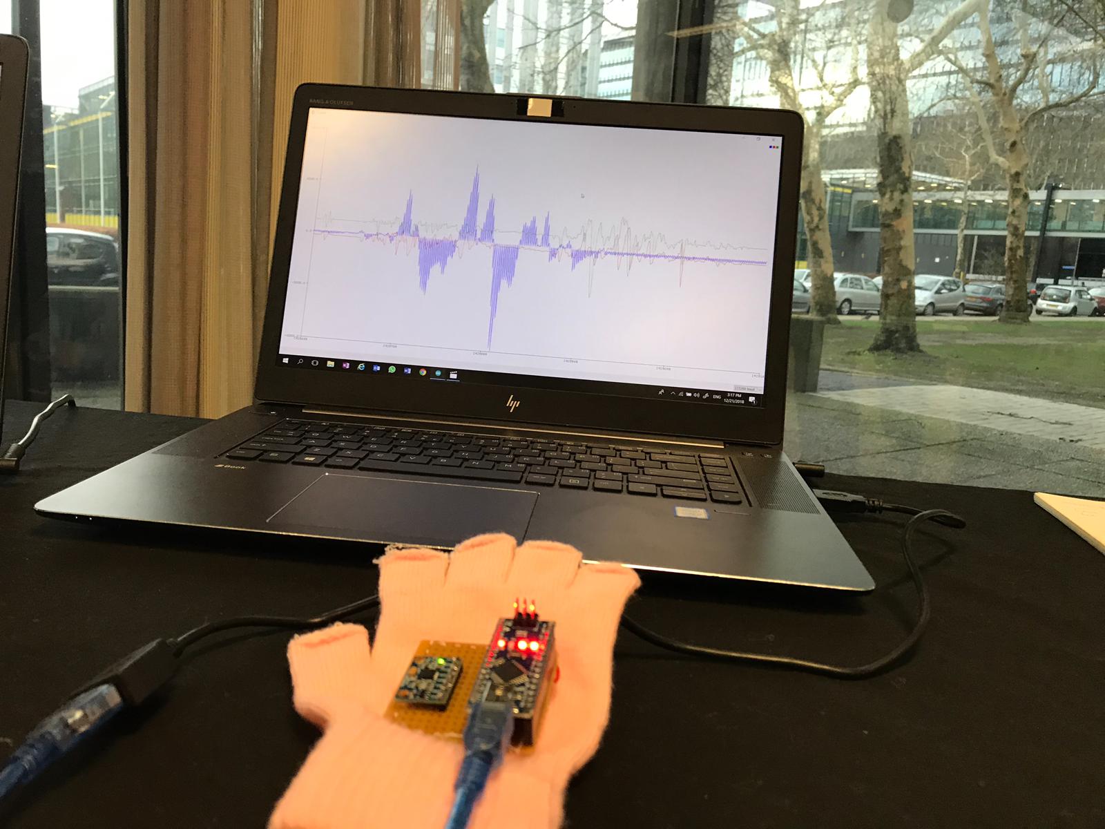 KwispelCare is designed to solve the problem state above. It is an interactive stuffed animal that children in the age group 4-8 have to take care of and serves as a buddy through the rehabilitation process. According to the occupational therapist at Adelante, children with CP have a lower mental age, which means that they are longer attracted to the stuffed animals. When the child takes care of it with the affected hand, it will wag its tail. When the child additionally strokes the head with the other hand, it will also start to bark. Besides this, there is a wristband which is designed to detect the amount of movement of the affected arm. This gives the therapist insights in the daily movement of the child from which he or she can adjust the rehabilitation process. Also, the wristband can detect when the movement of the affected arm is too little. If this is the case, a signal on the wristband will appear to encourage the child to e.g. feed the pet with their affected arm. When the child performs the assigned task, the pet will give positive feedback.